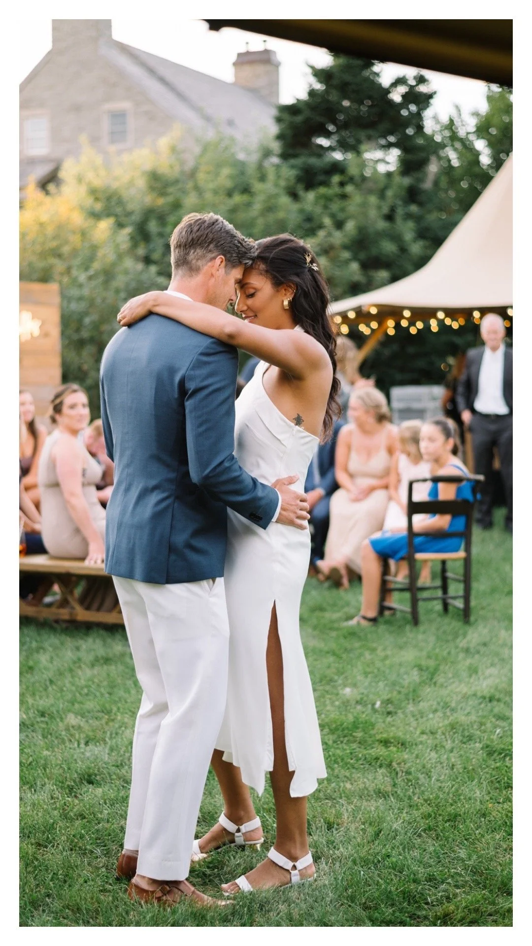 The reception was held on the opposite side of the property under Kohko’s Events Nordic tipi tents, with rentals from MacFarland’s, One Day Affair, MacKay Weddings and Events and Glow The Event Store. The couple had a custom neon sign made for a photo booth and signature drinks: Aperol Spritz and Bourbon Lemonade (I still think about that bourbon lemonade sometimes, honestly). I loved the plein-air vibe of the reception, and watching the sun start to set while Ryan and Celina had their first dance was like a scene from a movie. With no assigned seating, guests were free to mingle and enjoy their barbecue - catered by Asado - play lawn games, and hop between tables to visit with each other.