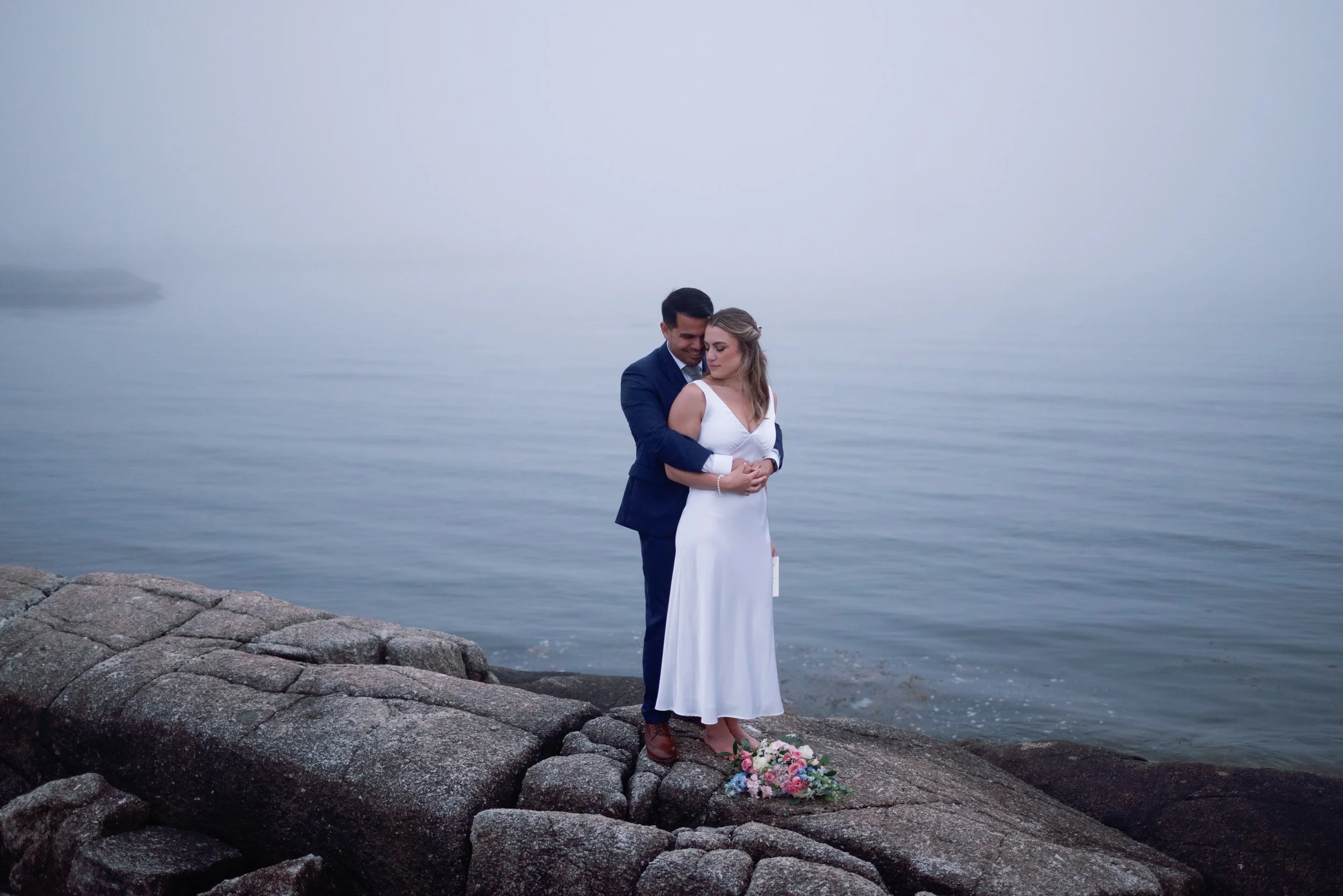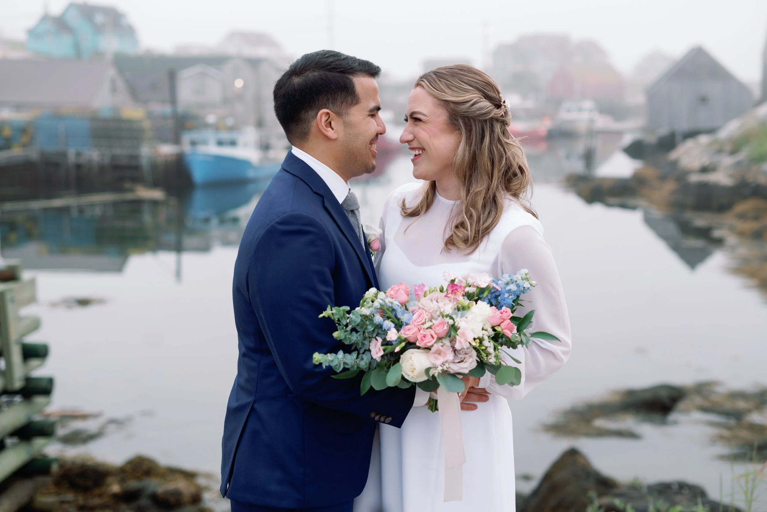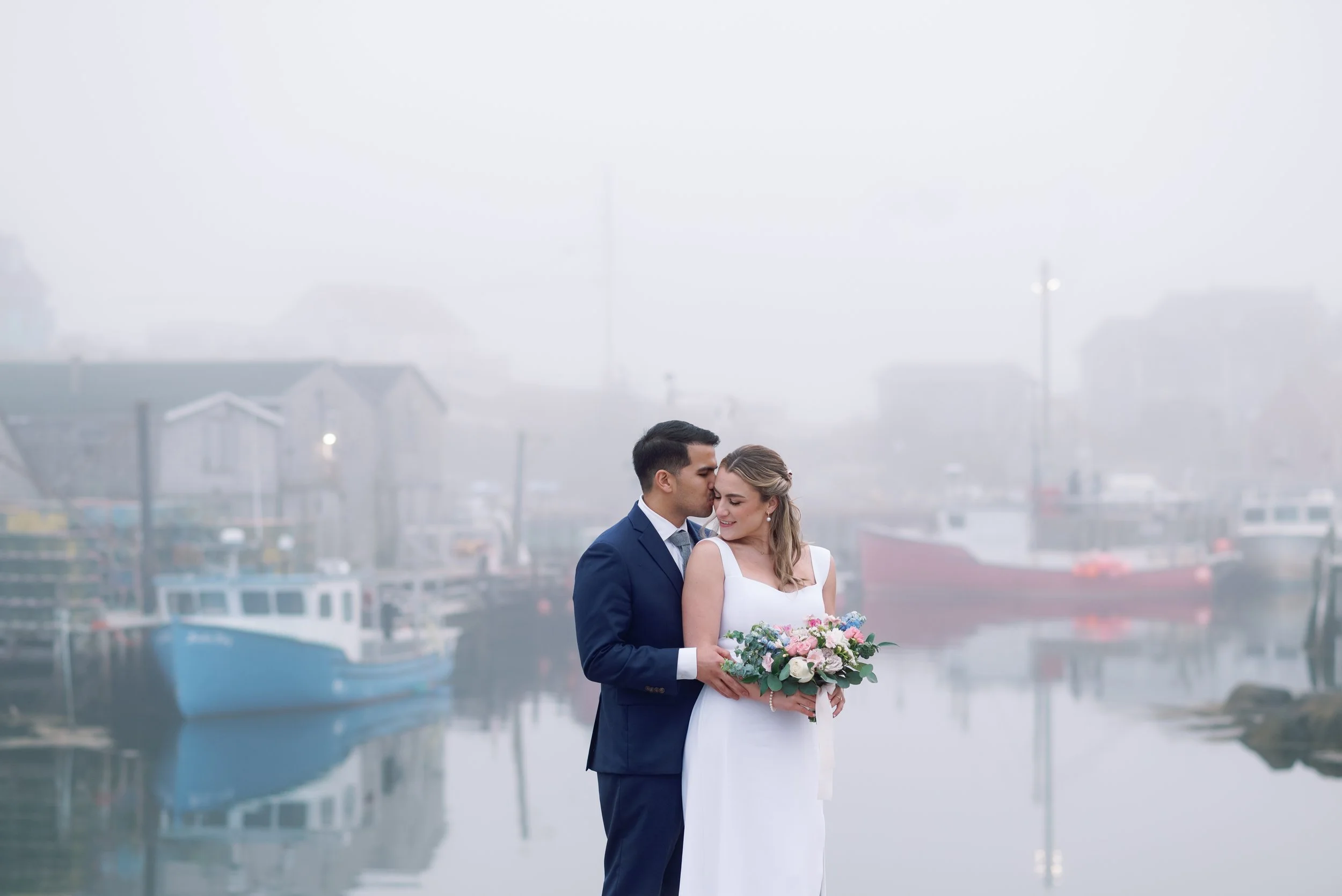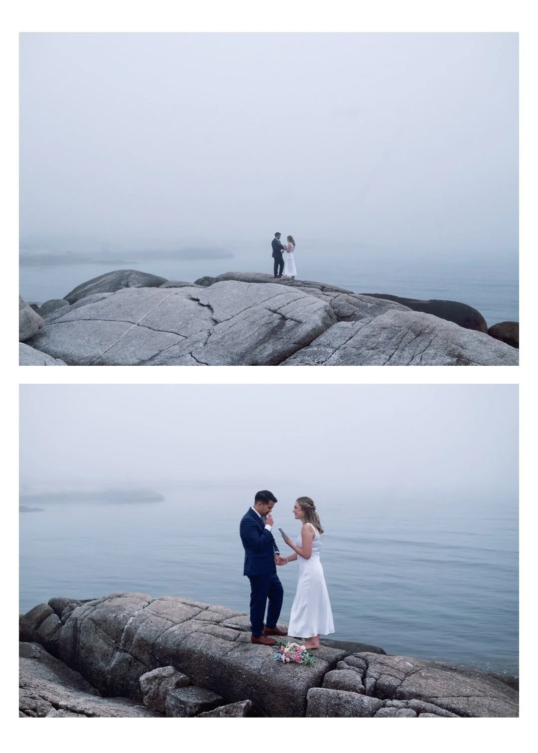 A&M’s Halifax elopement started off with a religious ceremony at the Alrasoul Islamic Society, with members of the local community to witness. As the day unfolded, our schedule got a little whimsical, and we found ourselves on a race against time to catch that dreamy, golden sunset at Polly's Cove. Much to our surprise, we left the sun behind in Halifax and were greeted with dense fog and cloud cover everywhere! Thinking on our feet, we abandoned Polly’s and headed straight to Peggy’s Cove, and I couldn’t be happier with that decision. Peggy always shines, sunset or not, and Mikayla and Adri's wedding photos? They look like they were plucked straight from a Nova Scotia postcard.